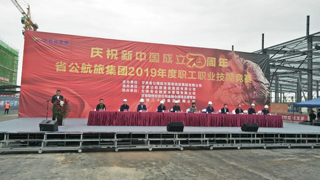 2019年9月18至19日,由省公航旅集團有限公司主辦,甘肅公航旅建設集團有限公司承辦,甘肅省金融資本管理有限公司、甘肅路橋投資公司金融倉儲項目建管處、中鐵二十局集團有限公司協(xié)辦的“慶祝新中國成立70周年 省公航旅集團2019年度職工職業(yè)技能競賽”在甘肅公航旅金融倉儲基地(一期)項目順利舉行。甘肅省總工會副主席張愛華、省公航旅集團總工程師喬小兵出席了大賽并作致辭。本次大賽還邀請了省人社廳職業(yè)技能鑒定中心主任何元魁,省職工技術協(xié)會副理事長、辦公室主任、省組委會辦公室副主任張學會、工人日報駐甘肅記者站站長康勁等蒞臨指導。集團公司相關部門、各子公司相關負責人、甘肅公航旅金融倉儲項目建管處相關工作人員等參加活動。