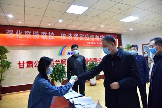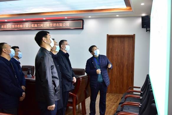 李睿廳長查看了蘭阿公司疫情防控工作情況,觀看了蘭阿公路項(xiàng)目視頻介紹,聽取了蘭阿公司復(fù)工復(fù)產(chǎn)工和項(xiàng)目進(jìn)情況匯報(bào),并對蘭阿公司現(xiàn)場疫情防控工作人員表示親切的慰問。